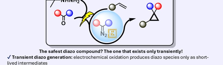 Diazo compounds are among the most versatile intermediates in organic synthesis, enabling high-value transformations such as cyclopropanation, X–H insertion, and heterocycle formation. However, their intrinsic instability and hazardous nature have severely restricted their practical use, particularly at scale, largely due to the need to generate, isolate, or accumulate diazo species in solution. Here, we report a safe, one-pot, scalable, and operationally simple electrochemical strategy for the in situ generation of diazo compounds from tert-butylhydrazones, directly coupled to Rh(II)-catalysed cyclopropanation. In contrast to established approaches, the diazo intermediates in this platform are generated and consumed continuously, with no detectable accumulation at any stage of the process.